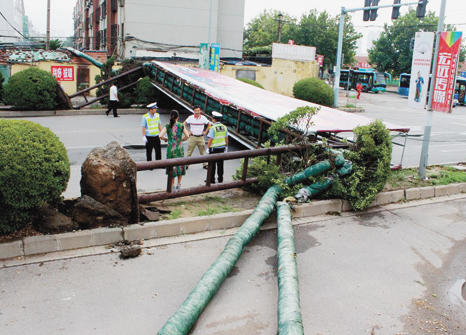 高架暖氣管道倒塌 交警緊急處理保暢通